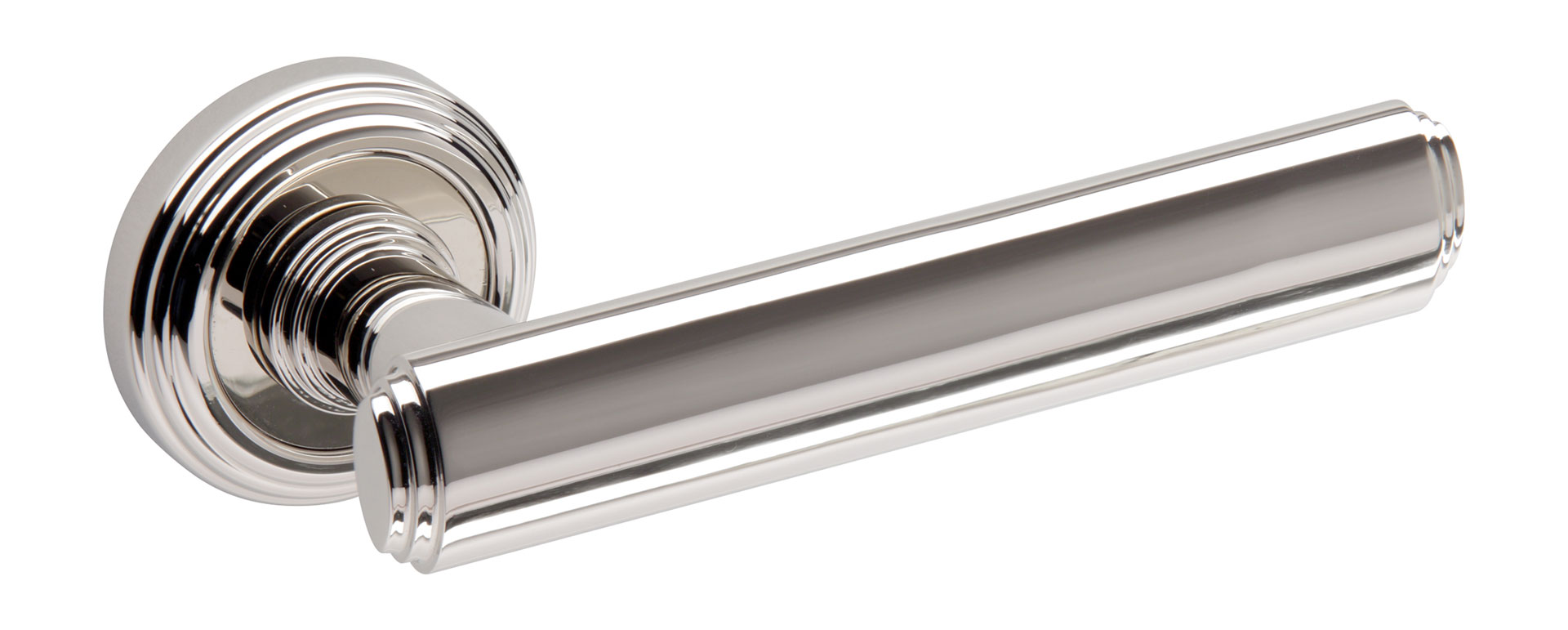 Дверная ручка на круглой розетке "ARTDECO" NB никель глянцевый 1053, материал Латунь, отделка Никель, 140*50 мм