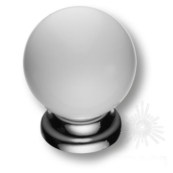Ручка кнопка 5102-402, материал Замак Пластик, отделка Белый Пластик Хром, d=28 мм